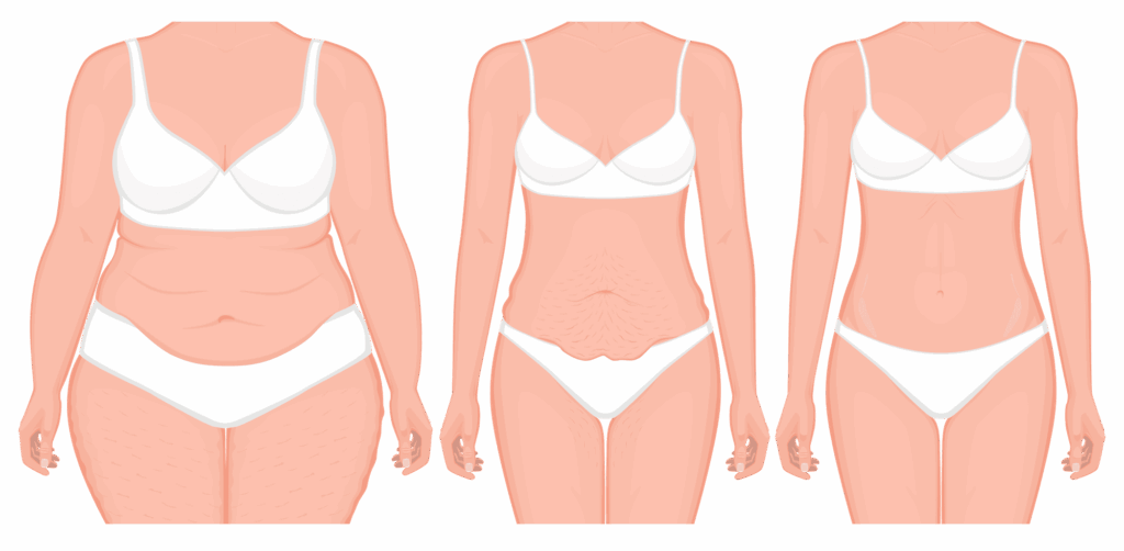 Les résultats sont étonnants. Il est tout à fait possible de faire disparaître un passé de surpoids et de retrouver un ventre plat, les cicatrices étant cachées par les sous-vêtements.