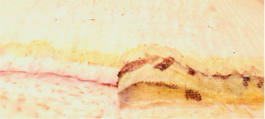 Quand la cicatrice est hypertrophique ou se trouve dans une zone de frottement (ceinture, pantalon…), on peut mettre des pansements en silicone (COMPEED).